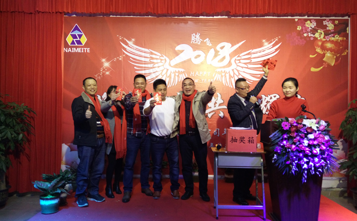 耐美特集團公司全體員工及嘉賓們歡聚一堂,邊享用著美酒佳肴邊觀賞著舞蹈及美妙的歌聲音樂。現(xiàn)場還進(jìn)行了抽獎,氣氛相當(dāng)熱烈,群情激動,整場年會充滿歡聲笑語,其樂融融。