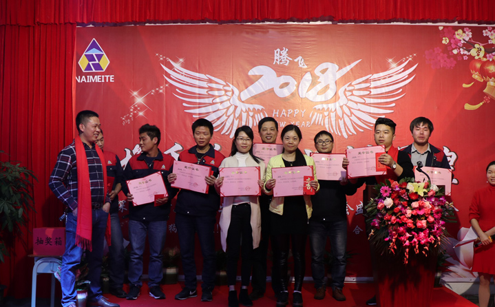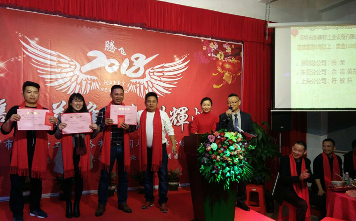 席間耐美特集團公司高層領(lǐng)導(dǎo)人為2017年度優(yōu)秀員工頒發(fā)了獎金及榮譽證書,以鼓勵大家在2018新的一年里再接再厲取得更好的業(yè)績。