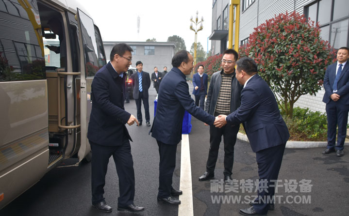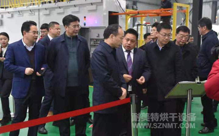 2020年12月9日上午,湖南省常德市委書記、市人大常委會主任周德睿,市委副書記、市長鄒文輝率領全市“開放強市 產業立市”流動現場會蒞臨湖南省耐美特智能烘干工業設備有限公司視察指導工作??h委書記車世忠,縣委副書記、縣長周功表等一行陪同。